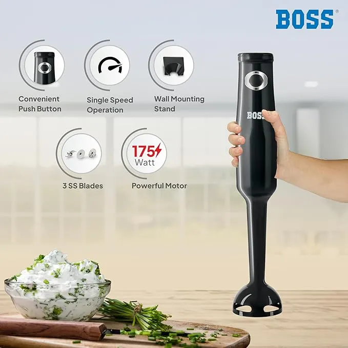 BOSS B148 Classic+ Hand Blender 175 watts With 3 Stainless Steel Blade, 2 Years Warranty*