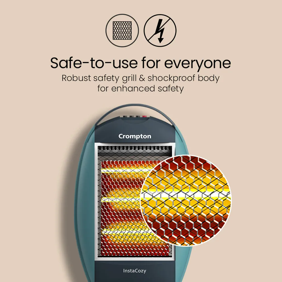 Keep your room warm and cozy with the Crompton Insta Cozy 1200W Halogen Room Heater, engineered for quick and safe heating during chilly winters. This powerful heater features three halogen heating rods that ensure instant warmth and even heat distribution.