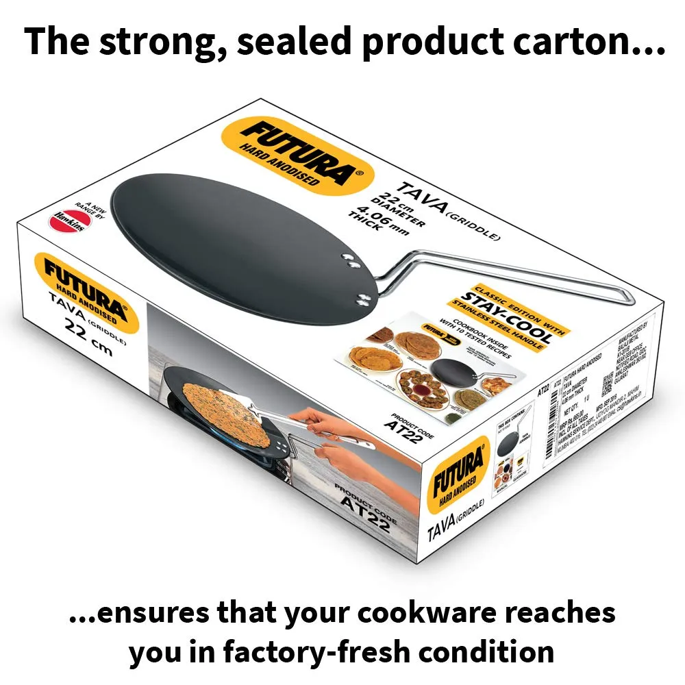 Hawkins Futura Hard Anodised Roti Tava 22cm (4.06mm) delivers faster, even heating for soft, perfectly cooked rotis and chapatis. Strong, long-lasting, and easy to maintain.