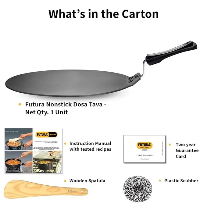 Hawkins Futura Nonstick Dosa Tava 30 cm (NDT30) – 4.88 mm thick heavy-gauge aluminium tava with superior nonstick coating for perfect, crisp dosas every time. Durable, easy to clean, and energy-efficient for everyday cooking.