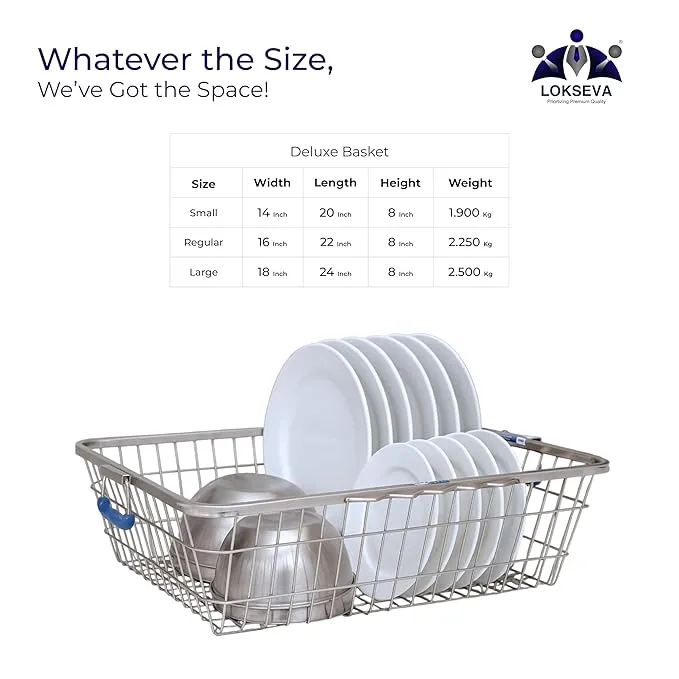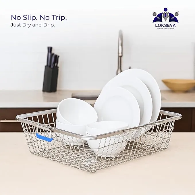 Lokseva Stainless Steel Deluxe Square Pipe Utensils Basket Large | Drainer & Dish Drying Rack For Kitchen | Rustproof | Stainless Steel Bartan Tokra