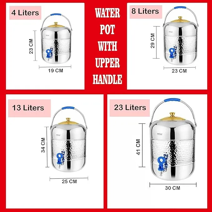Its elegant hammered exterior enhances the look of any kitchen or serving area, while the 23-litre capacity makes it suitable for large families, offices, shops, gatherings, and commercial spaces. Equipped with a sturdy, leak-proof tap, it allows smooth and easy water dispensing without spills.