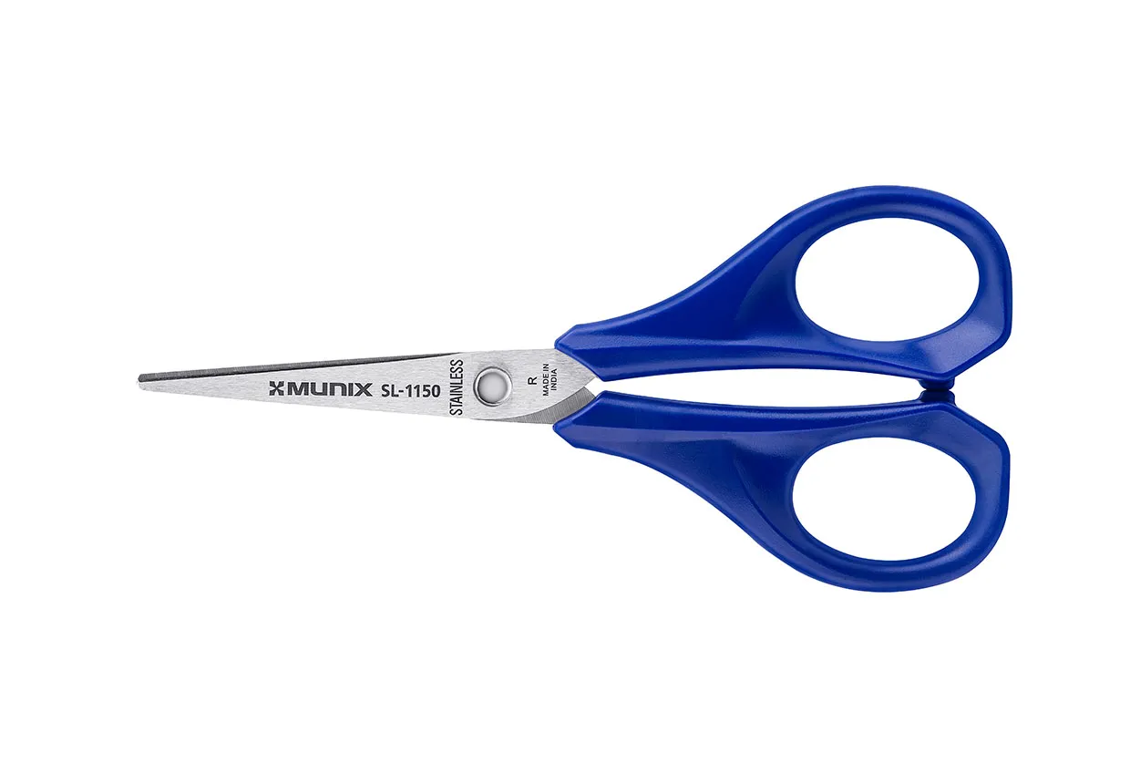 Munix SL-1150 (128mm) Scissor is a compact and sharp utility scissor ideal for cutting paper, thread, sachets, gift wrap and milk pouches. Lightweight, durable and perfect for everyday home, school and office use.
