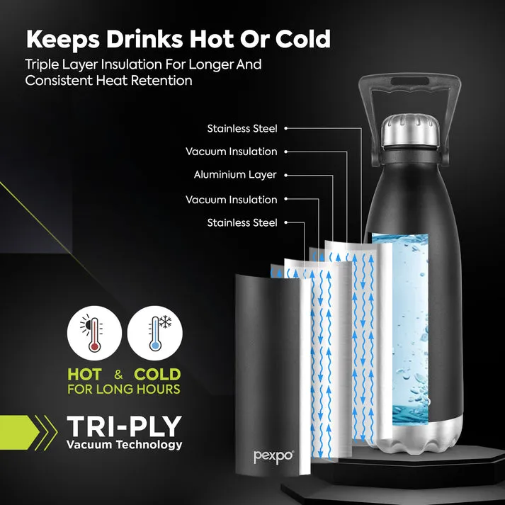 Pexpo Echo 1500 Hot & Cold Water Bottle | ISI Certified Made In India | Vacuum Stainless Steel Insulated Water Bottle | Hot & Cold Water Bottle