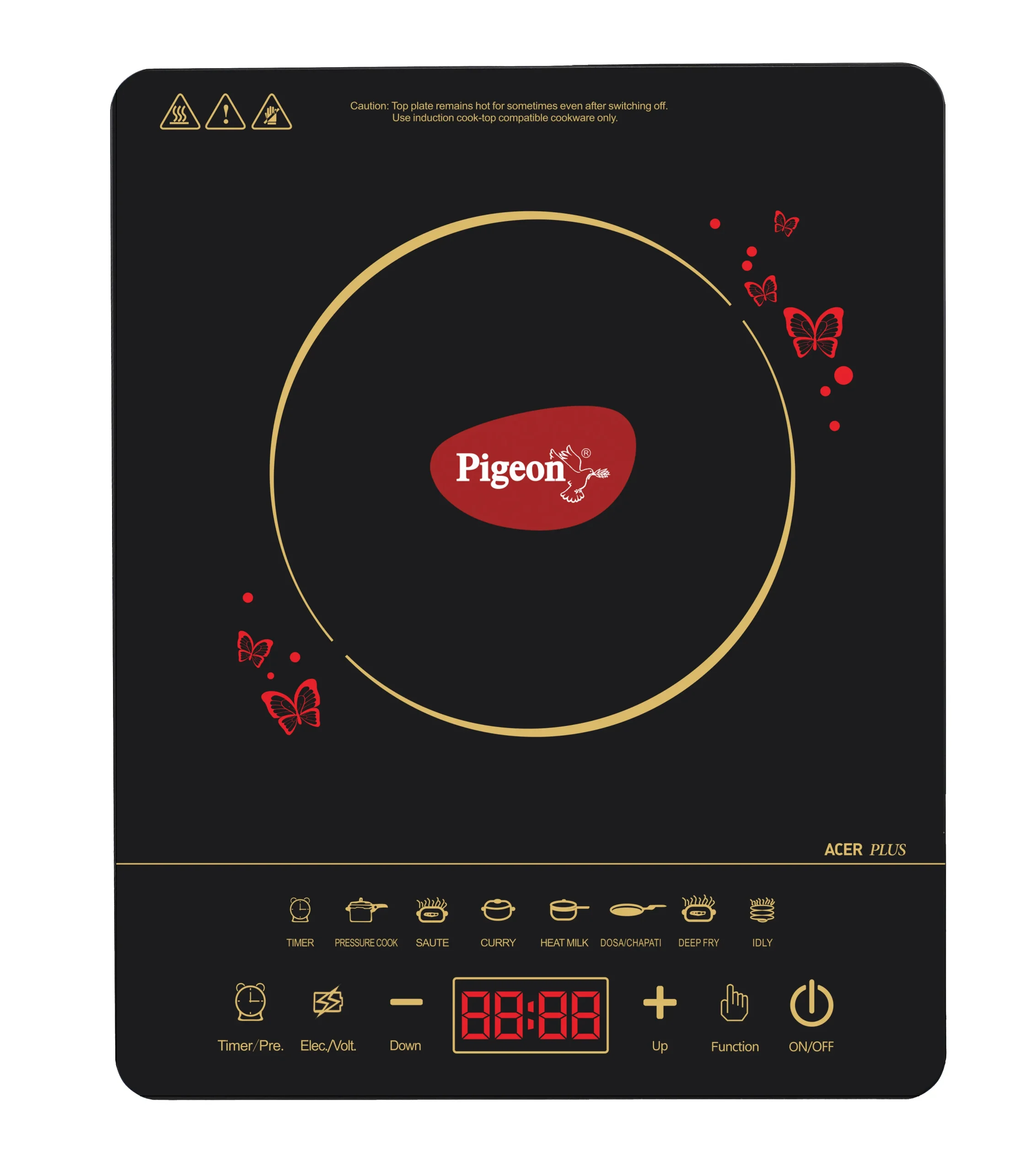 The Pigeon Acer Plus Induction Cooktop (1800W) features fast heating, smart touch controls, preset Indian cooking menus, and superior energy efficiency—perfect for modern homes.