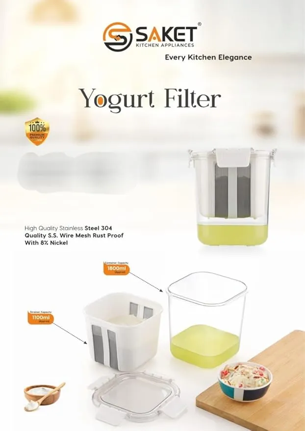The Saket Yogurt Filter is a durable and hygienic kitchen tool designed to easily strain curd and prepare thick, creamy yogurt, hung curd, and Greek yogurt at home.