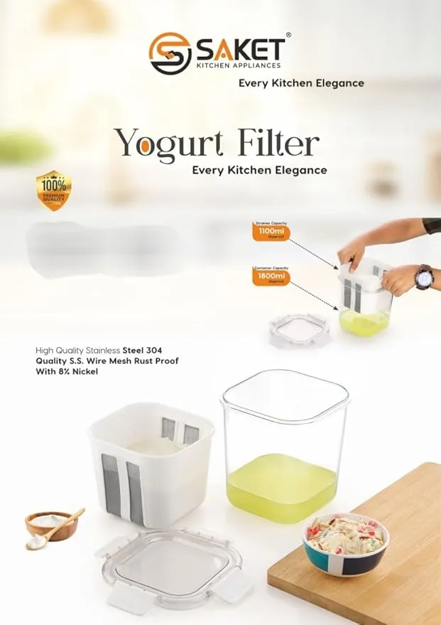 Saket Yogurt Filter With 1100ml Mash Strainer & 1800ml Container For Yogurt & Shreekhand Maker