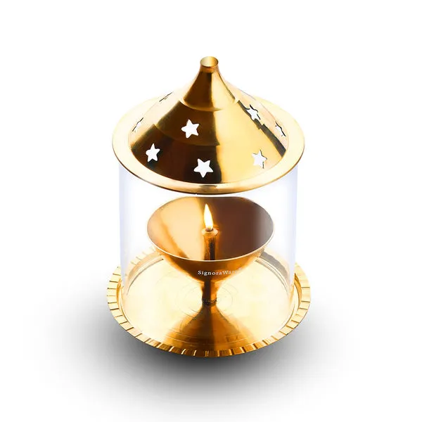 Signoraware Akhand Diya Big Brass with Glass Cover – Long-Lasting Puja Diya for Home Temple (2103)